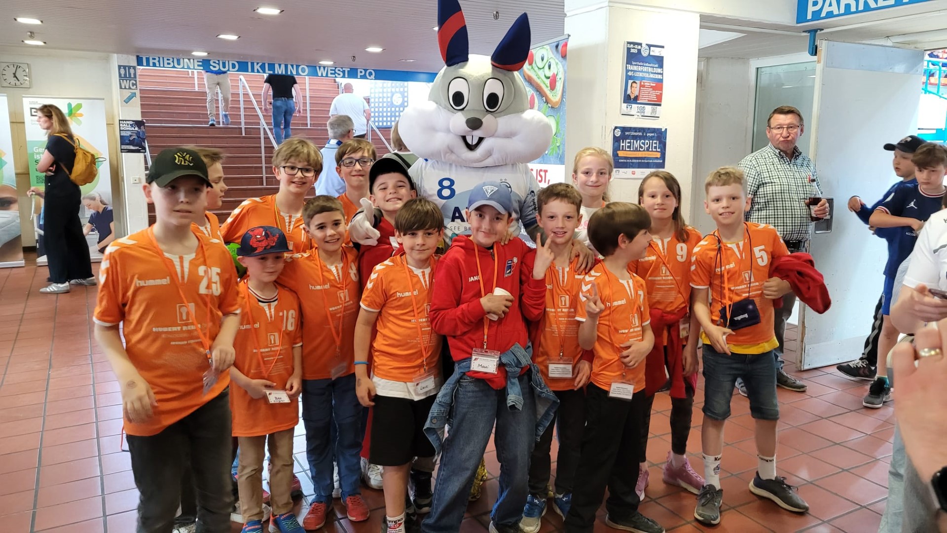 Doch vorher hieß es, Füße vertreten und Action im Park Schönbusch in Aschaffenburg. Der Rundweg führte uns an schönen Stellen vorbei, wobei der Höhepunkt sicher der Irrgarten in Form einer langen Hainbuchenhecke war. Zum Glück gab es eine erhöhte Aussichtsplattform, von der aus wir auch das letzte Kind wohlbehalten wieder zu uns holen konnten. Das Mittagessen gab es im SB-Biergarten bei tollem Wetter. Nachdem sich die Kids noch im großzügigen Park und dem Spielplatz verausgabt hatten, wurde die Meute wieder zusammengetrommelt. Der Bus brachte uns zur nahegelegenen Linde MH Arena. Das sollte für die Meisten eine neue Erfahrung werden, alles größer und lauter wie in unserer Kahlbachhalle. Wir bejubelten jedes der Großwallstädter Tore und freuten uns am Ende über den Sieg.