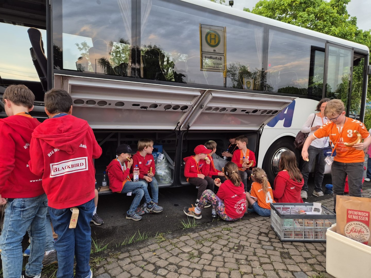 Bevor wir den Heimweg antraten wurde das Abendbrot verteilt, wir hatten Brezeln, Äpfel und Getränke im Bus bereitgestellt.